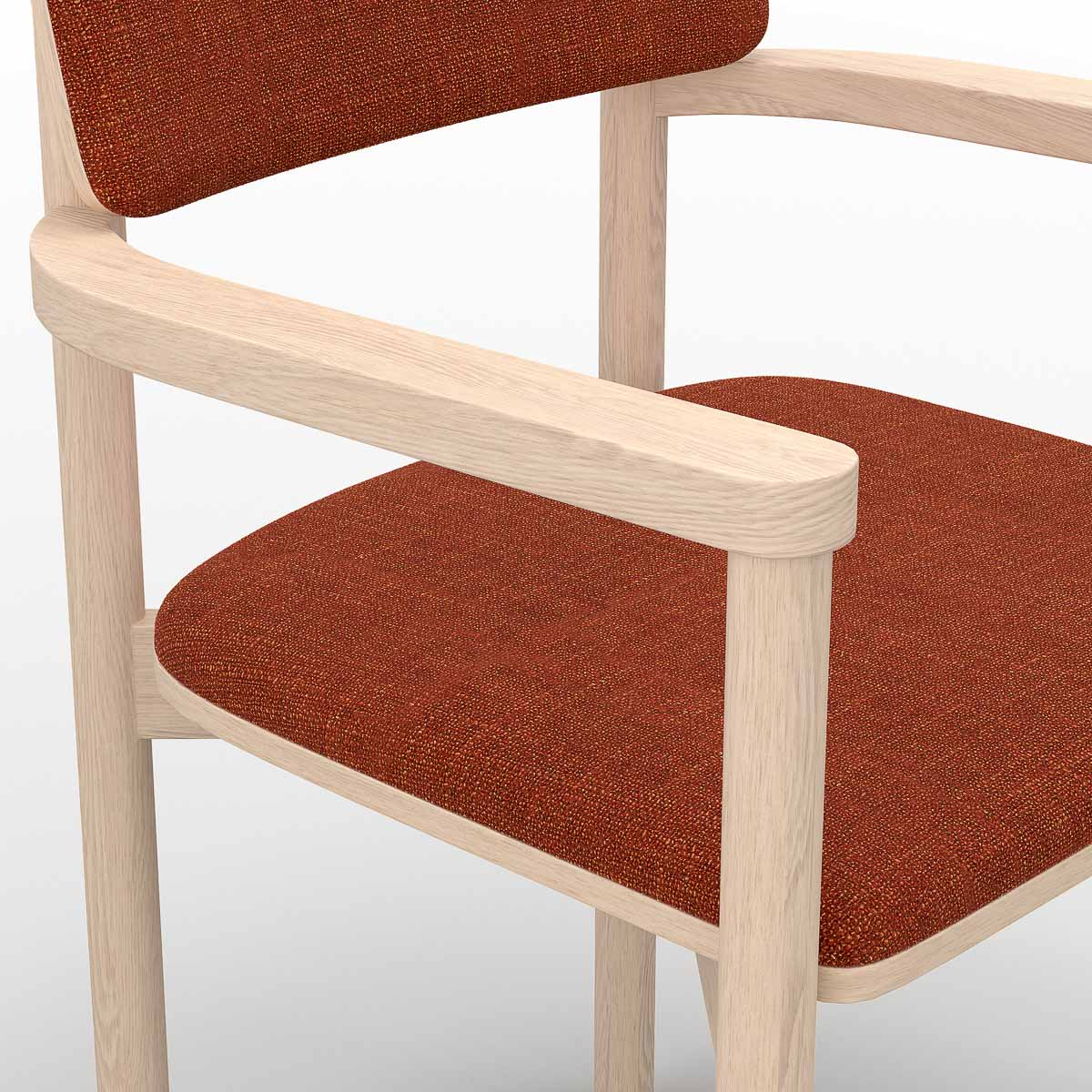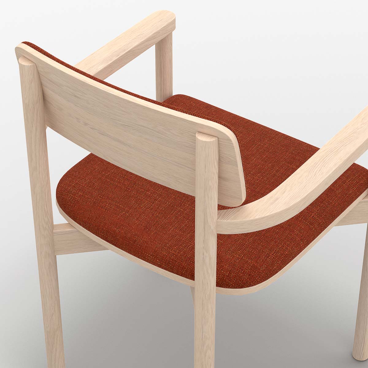 The Portfolio Armchair is constructed from solid timber with an upholstered seat and backrest. Integrated armrests provide additional support, while the frame ensures stability and everyday usability. Designed for cafe, dining, and workplace environments, it balances comfort, durability, and practicality.