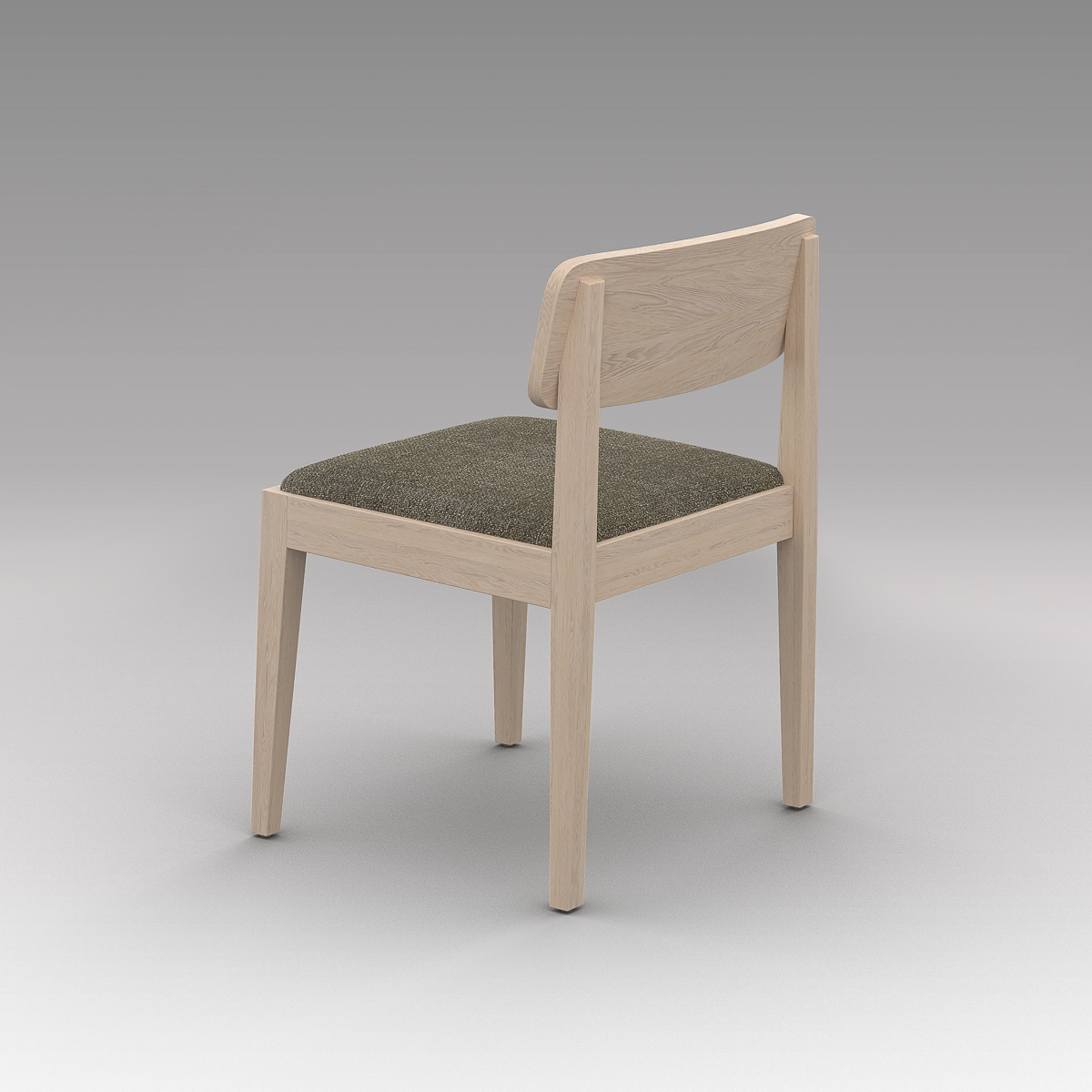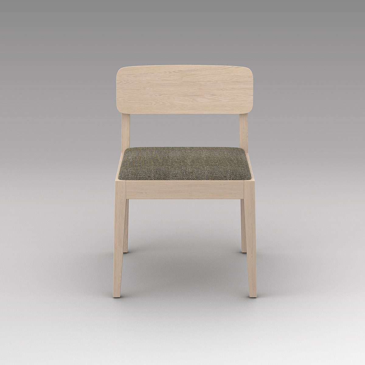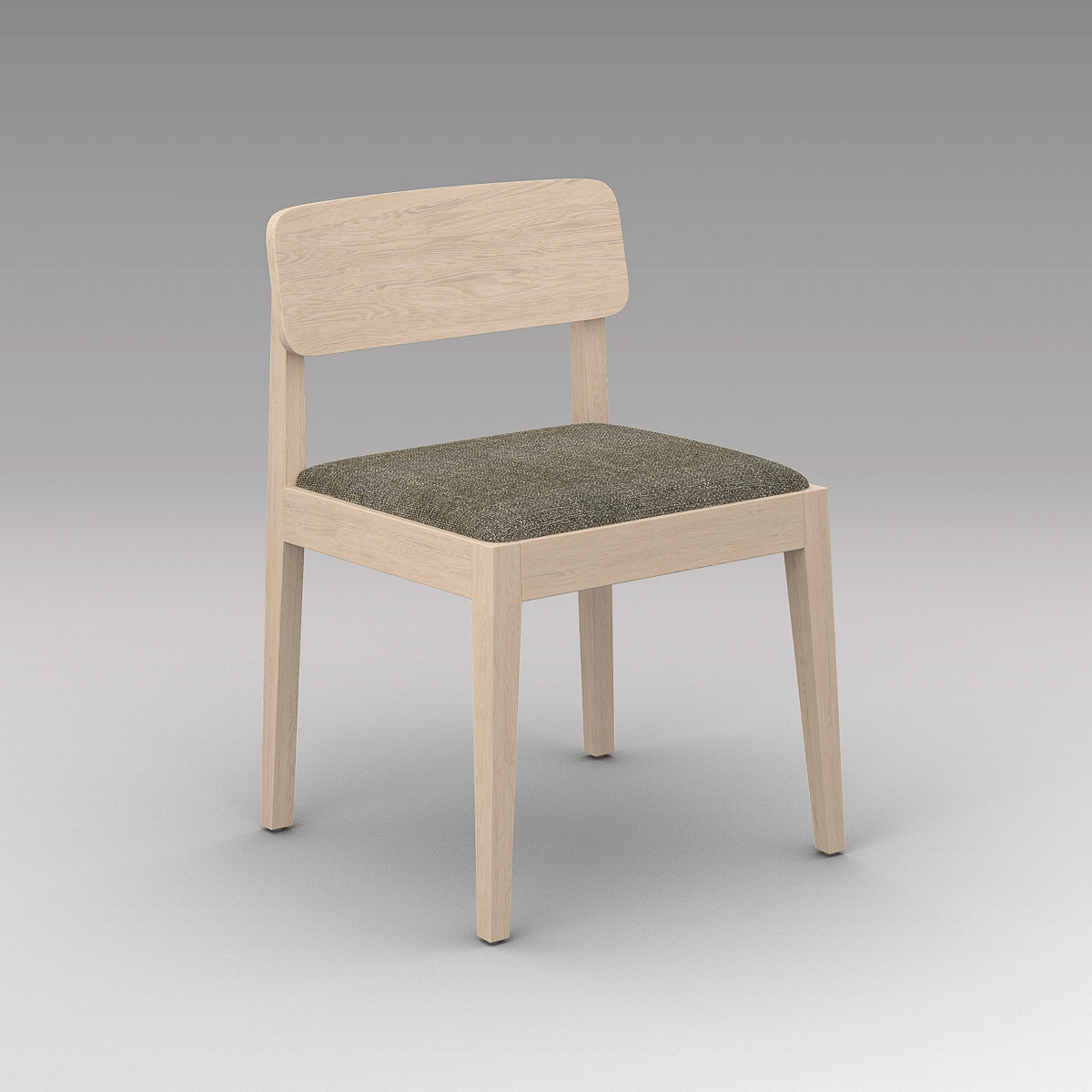 The Portfolio Workplace/Cafe Chair is defined by clarity of structure and proportion made from solid timber. An upholstered seat adds comfort, and a subtle 65 mm rail reinforces the frame, while tapered legs—measuring 40 mm to 25 mm—introduce a controlled sense of movement and precision. Integrated glides ensure stability and protect floor surfaces. A chair designed for longevity, comfort, and everyday use.