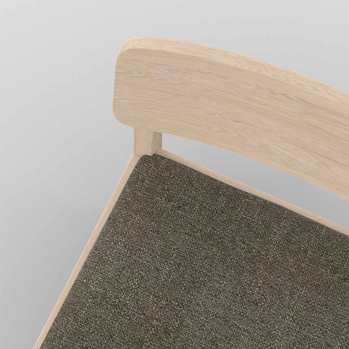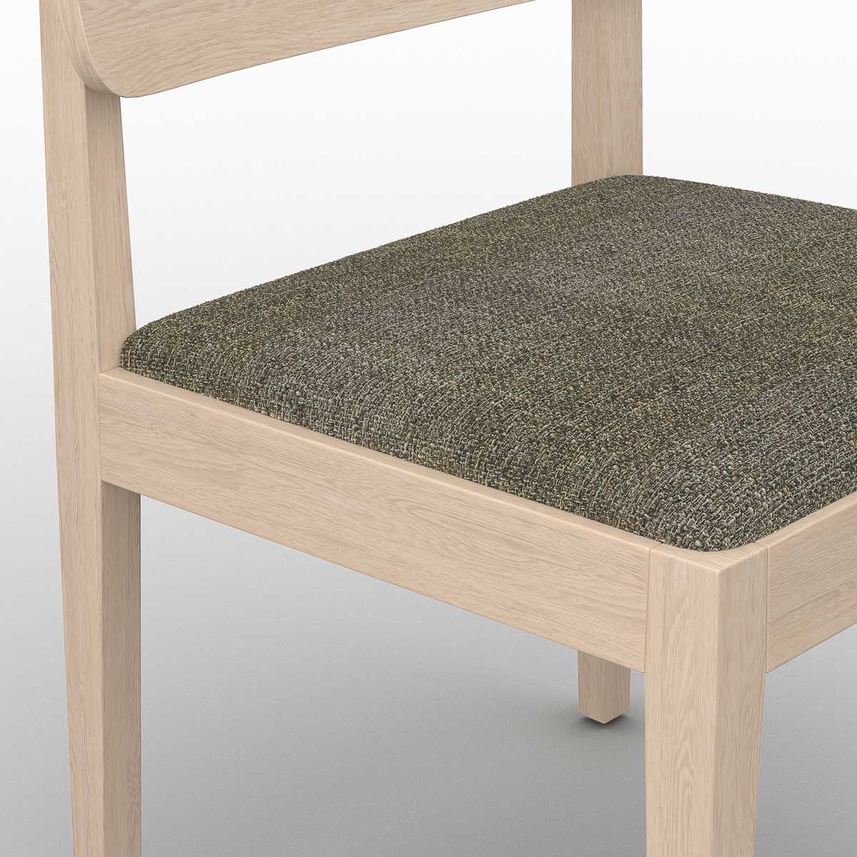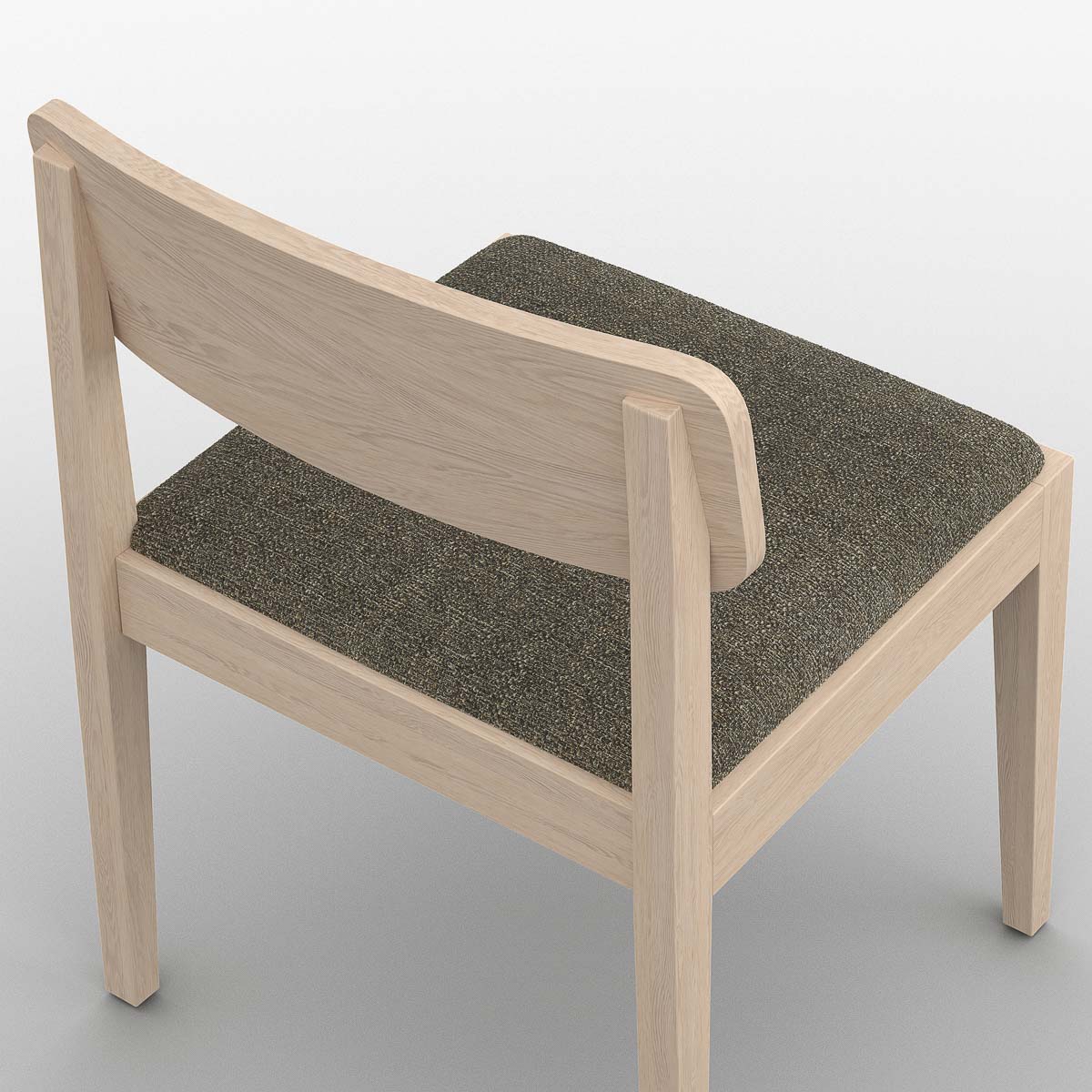 The Portfolio Workplace/Cafe Chair is defined by clarity of structure and proportion made from solid timber. An upholstered seat adds comfort, and a subtle 65 mm rail reinforces the frame, while tapered legs—measuring 40 mm to 25 mm—introduce a controlled sense of movement and precision. Integrated glides ensure stability and protect floor surfaces. A chair designed for longevity, comfort, and everyday use.
