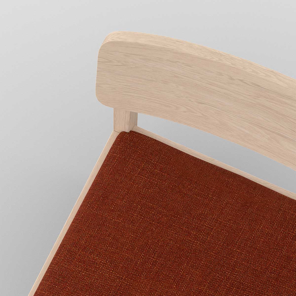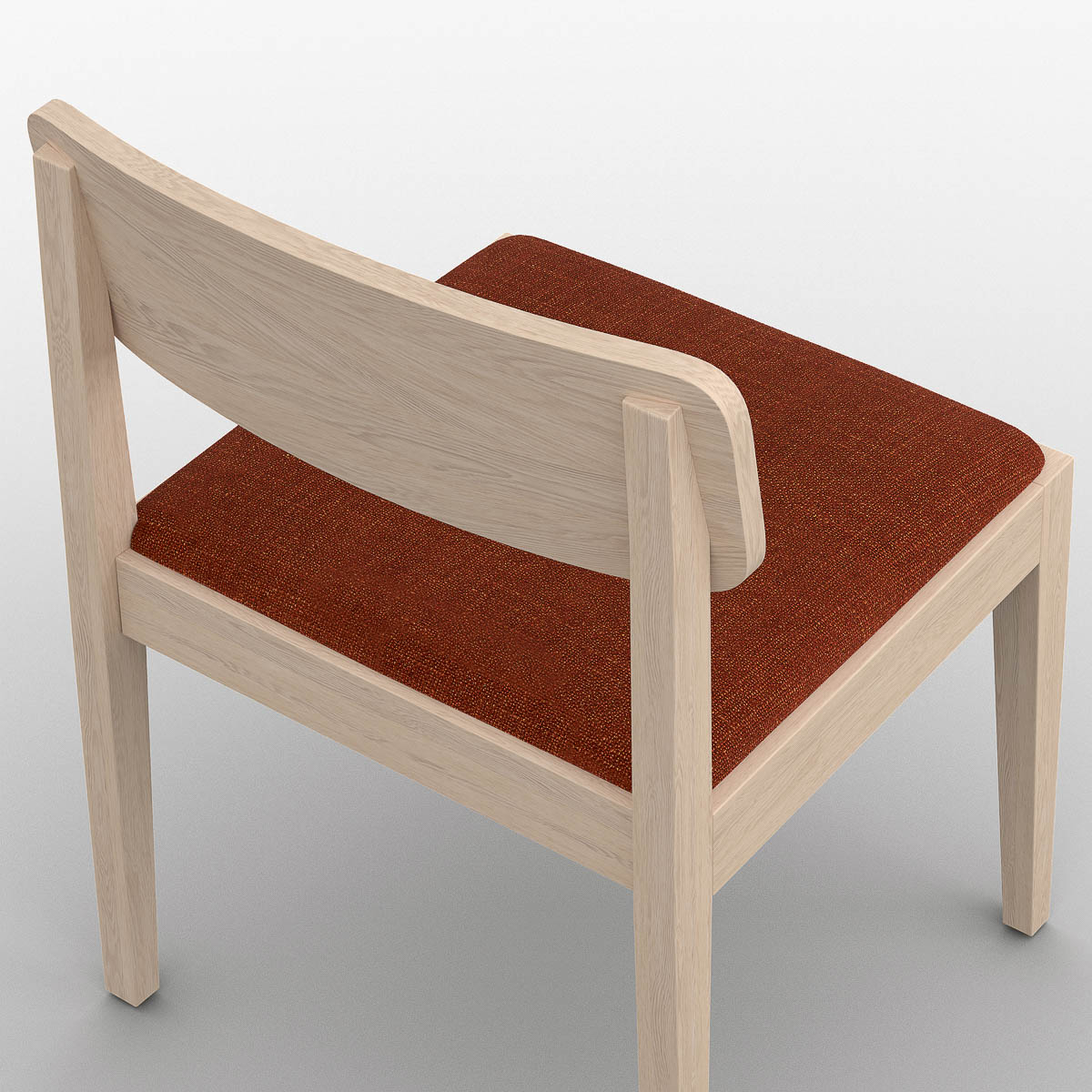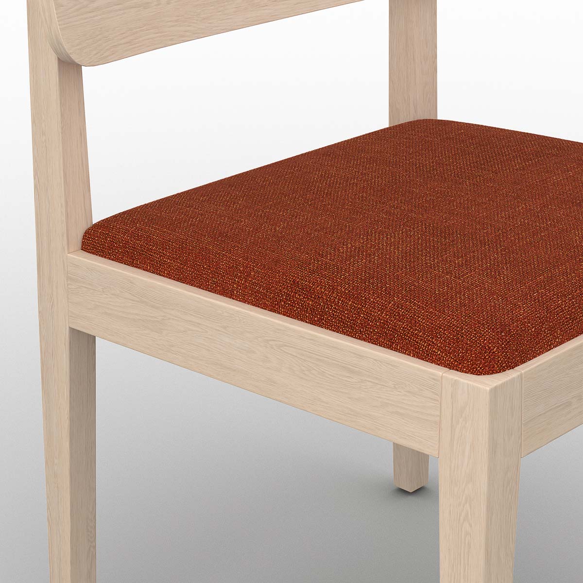 The Portfolio Workplace/Cafe Chair is defined by clarity of structure and proportion made from solid timber. An upholstered seat adds comfort, and a subtle 65 mm rail reinforces the frame, while tapered legs—measuring 40 mm to 25 mm—introduce a controlled sense of movement and precision. Integrated glides ensure stability and protect floor surfaces. A chair designed for longevity, comfort, and everyday use.