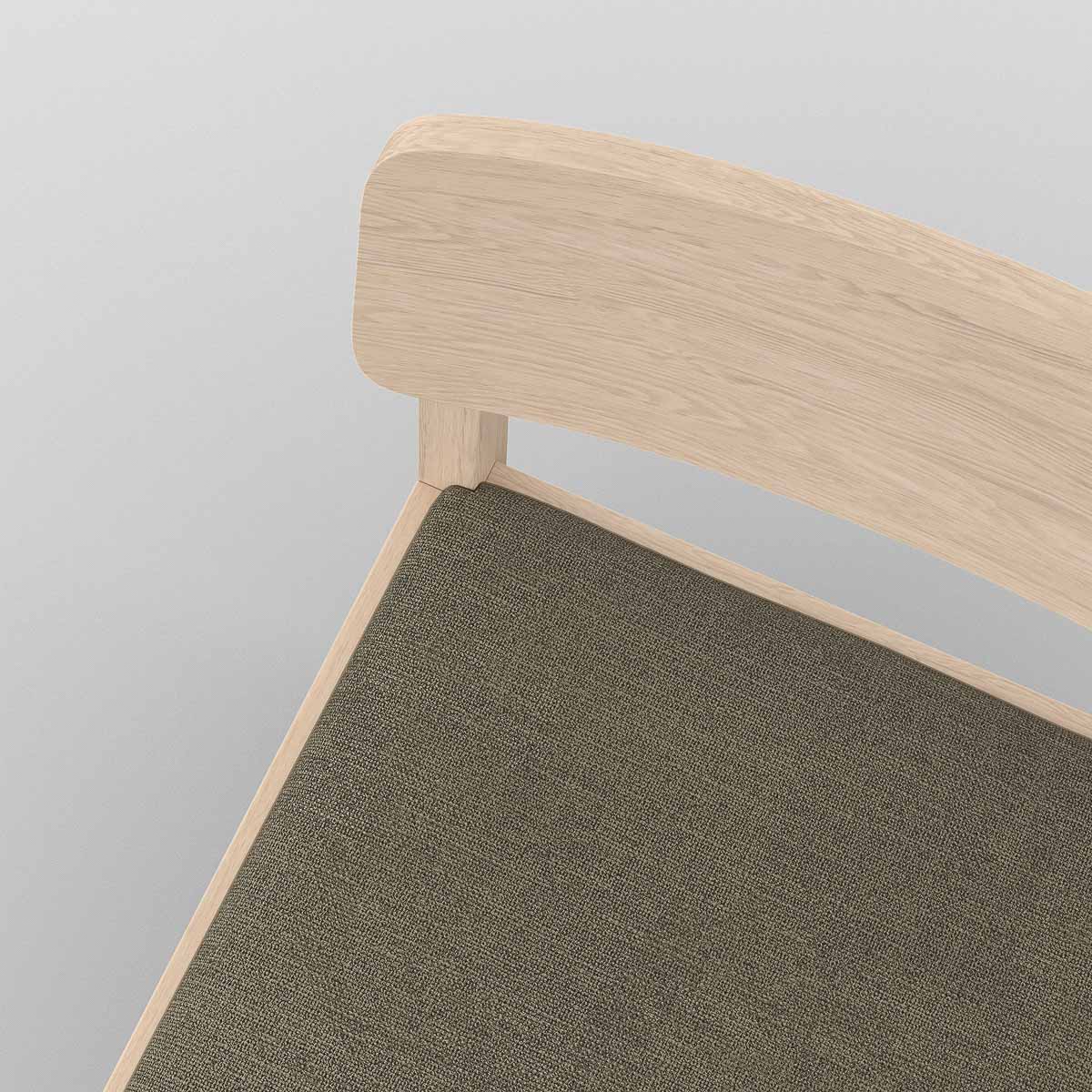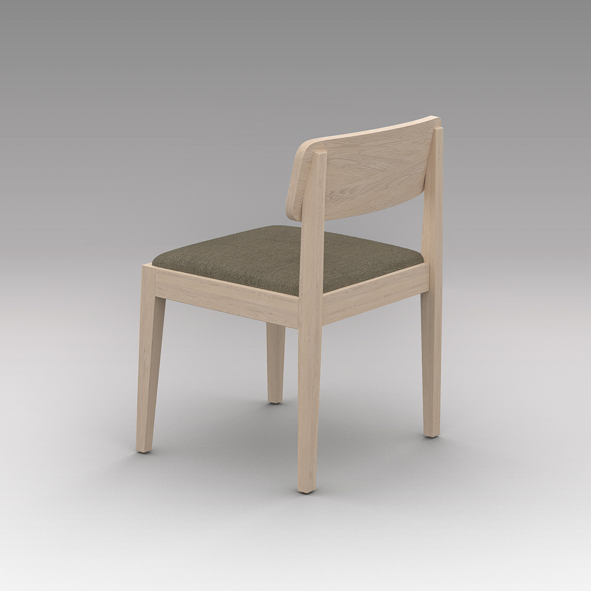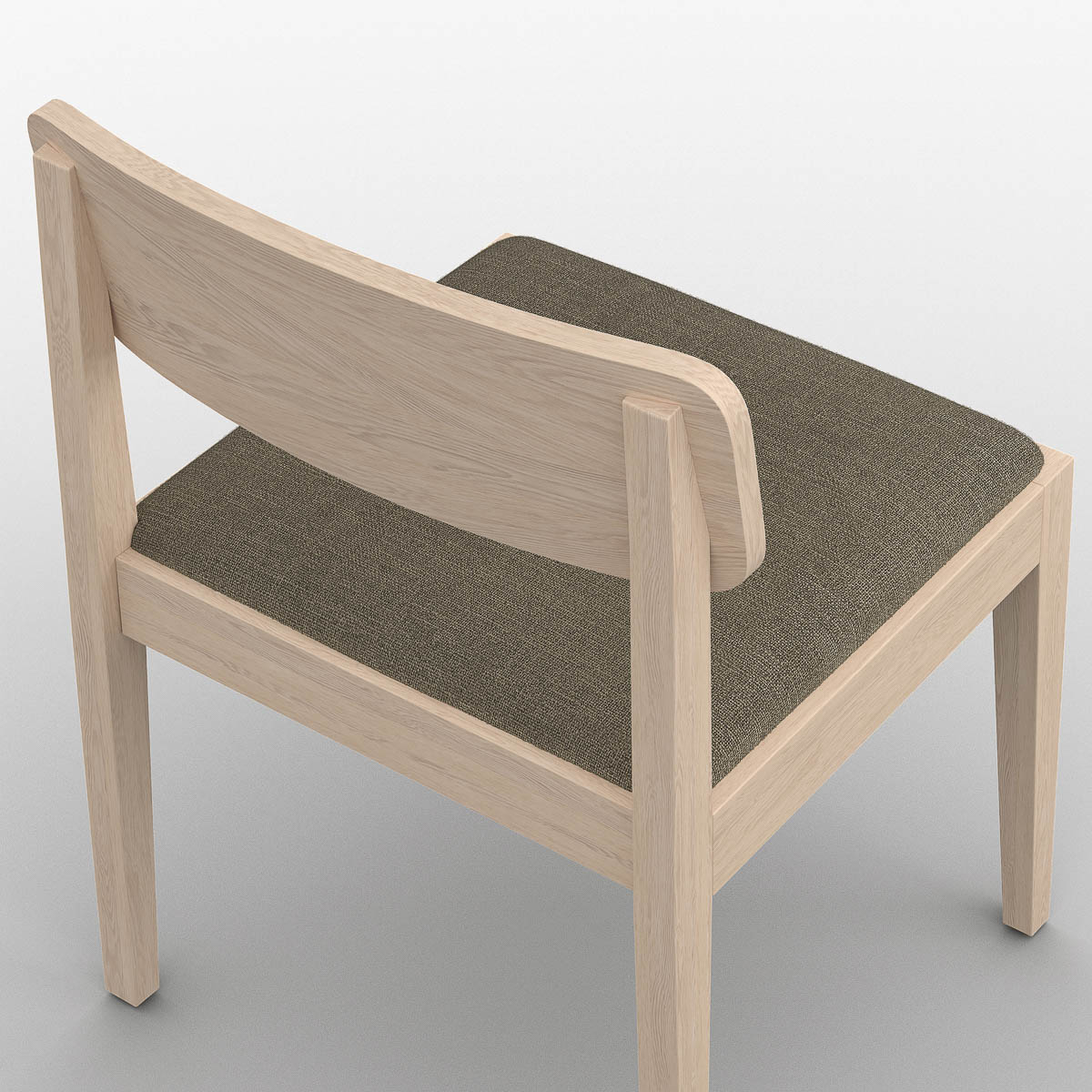 The Portfolio Workplace/Cafe Chair is defined by clarity of structure and proportion made from solid timber. An upholstered seat adds comfort, and a subtle 65 mm rail reinforces the frame, while tapered legs—measuring 40 mm to 25 mm—introduce a controlled sense of movement and precision. Integrated glides ensure stability and protect floor surfaces. A chair designed for longevity, comfort, and everyday use.