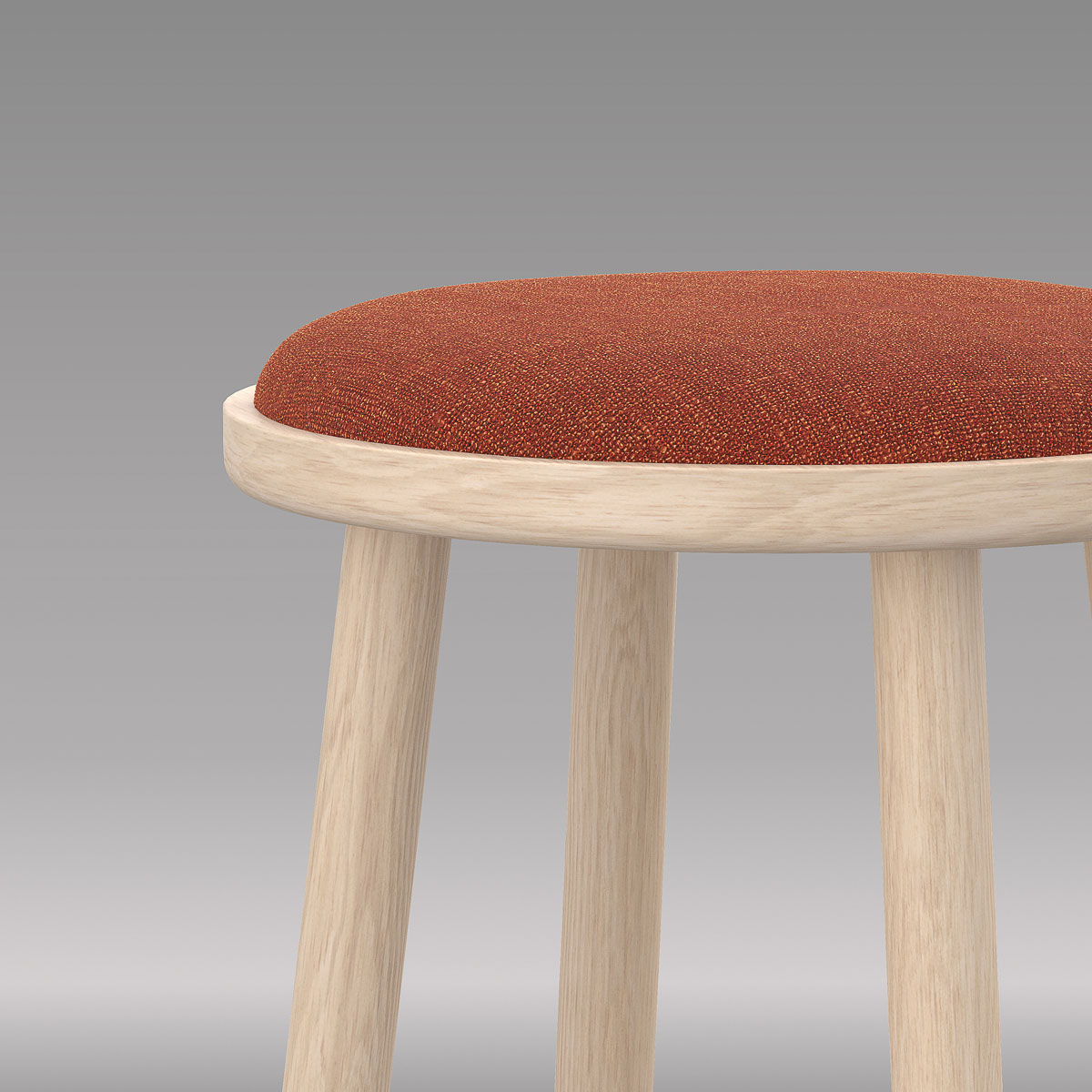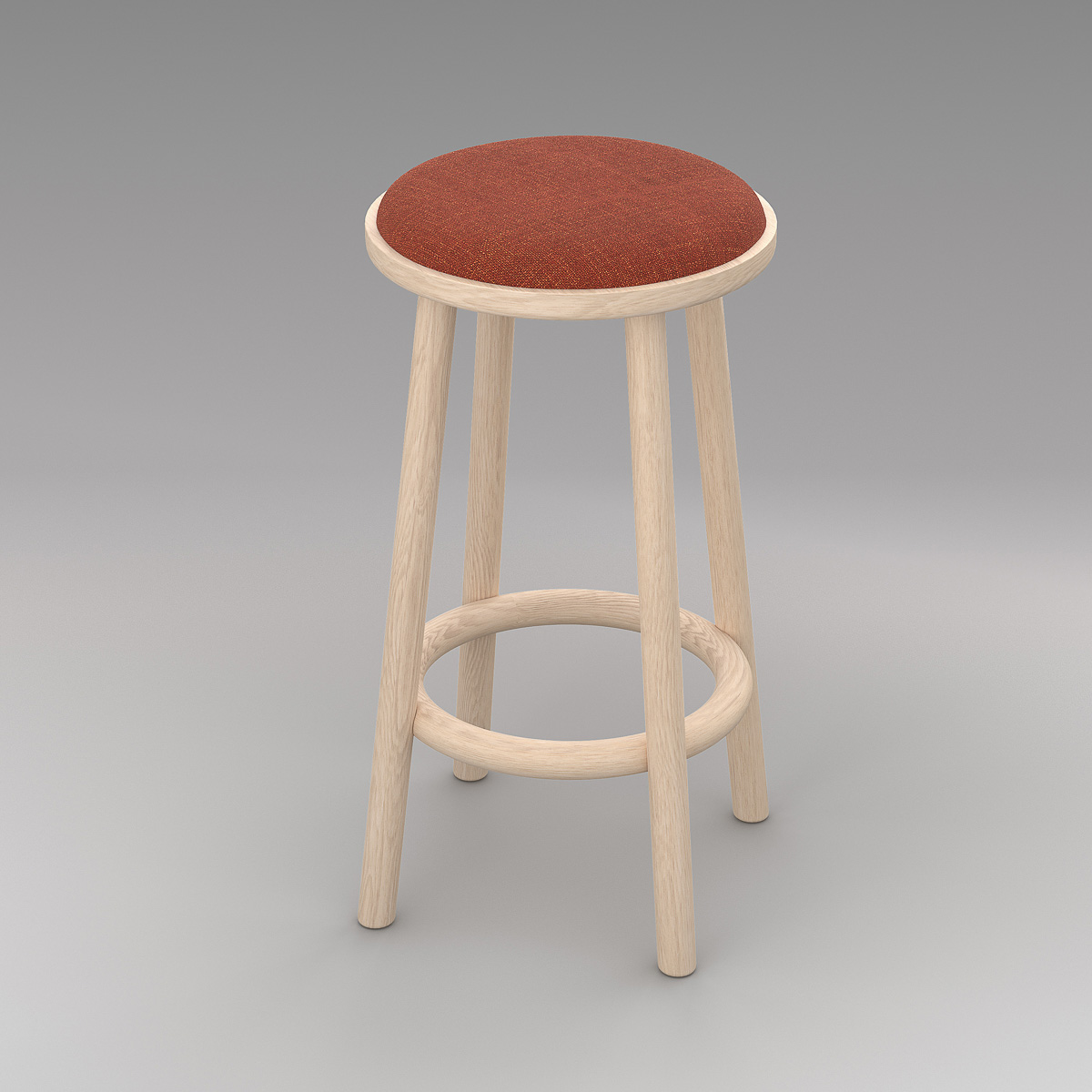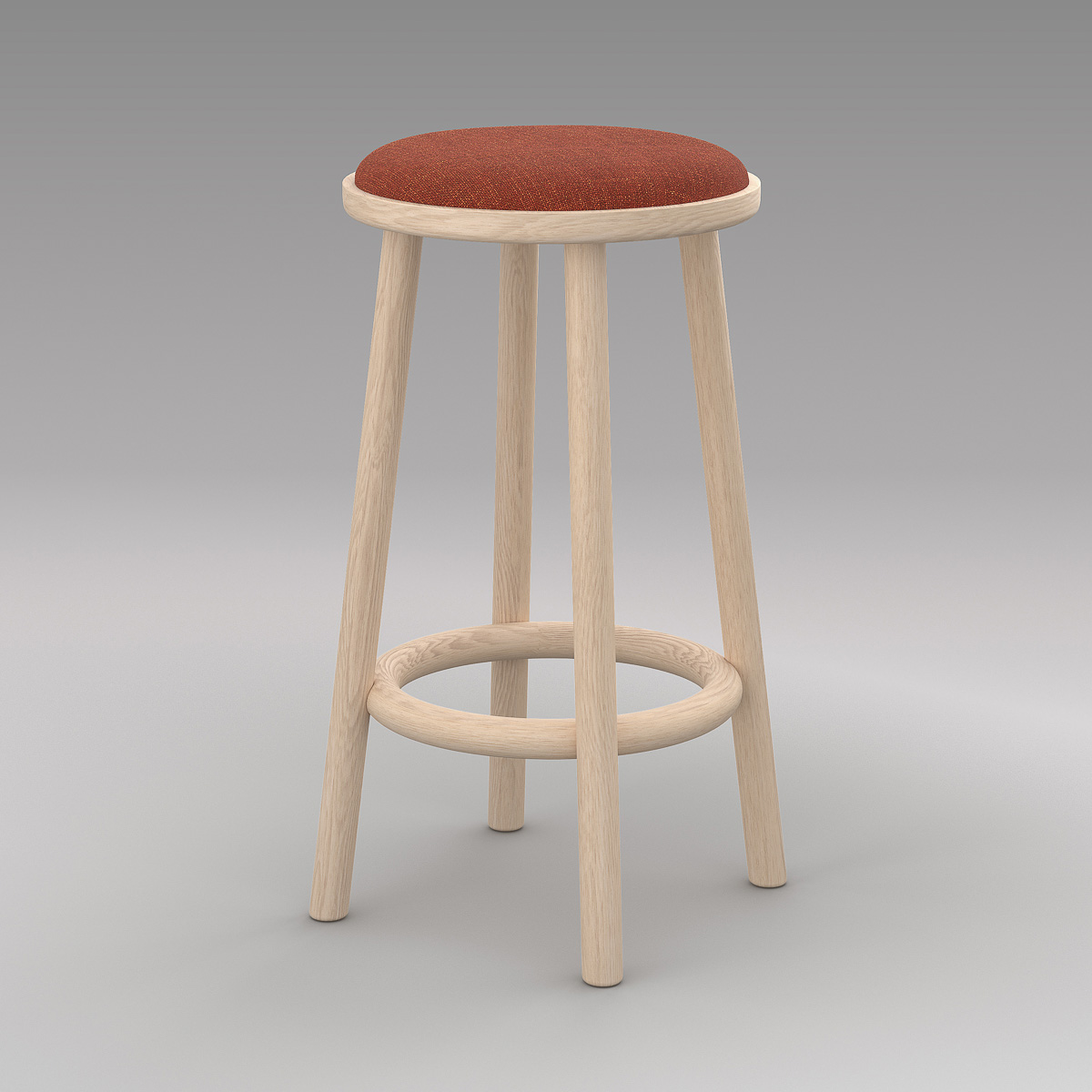The Portfolio Cafe Stool is constructed from solid timber with an upholstered seat. Slim 30 mm legs provide a stable and compact base, supported by an integrated footrest for added comfort. Leg glides protect floor surfaces, making the stool suitable for café and workplace environments.