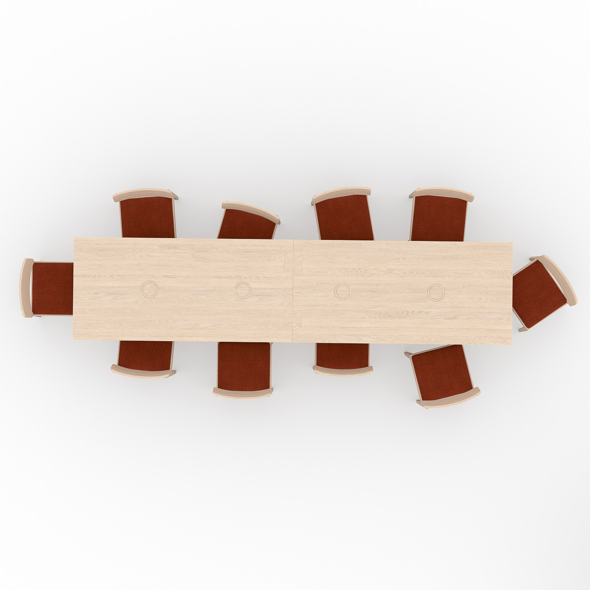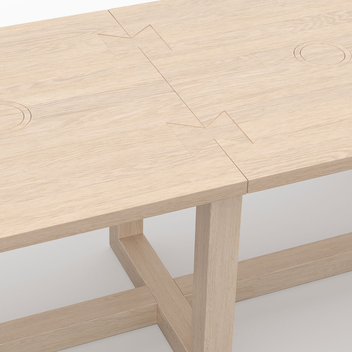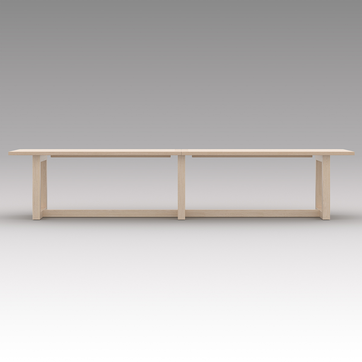 Designed for focused work spaces, the Portfolio Workplace Table balances clarity of form with considered functionality. Two discreet cable points support a clean, organized surface, while integrated glides on the underside ensure stability and adaptability across different environments. Beneath the tabletop, three recessed metal strips run depth-wise, reinforcing the desk structure and preserving the integrity of the surface over time. A refined workspace piece, defined by restraint, durability, and architectural intent.
